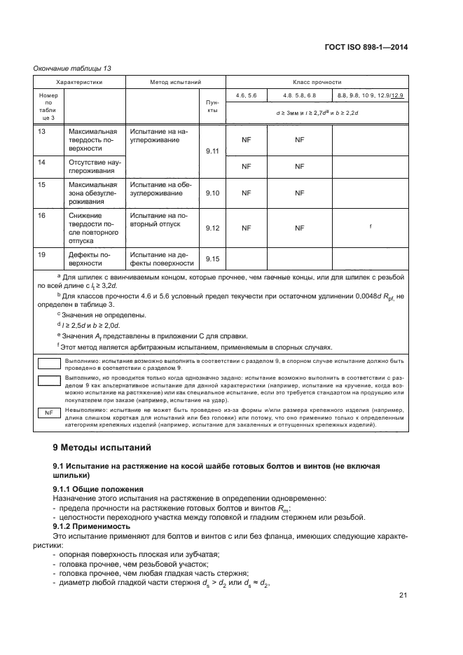 | Область и условия применения: | Настоящий стандарт устанавливает механические и физические свойства болтов, винтов и шпилек из углеродистых и легированных сталей при испытании в условиях с температурой окружающей среды от 10 °С до 35 °С. Крепежные изделия (болты, винты и шпильки) оцениваются на соответствие требованиям настоящего стандарта только в указанном температурном диапазоне. Изделия могут не сохранять установленные механические и физические свойства при более высоких и более низких температурах (см. приложение B).