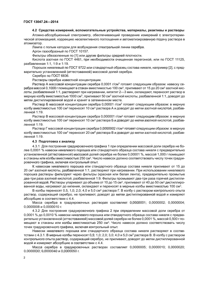 Настоящий стандарт устанавливает атомно-абсорбционные методы определения серебра (при массовой доле серебра от 0,00001 % до 0,0030 %) в первичном никеле по ГОСТ 849