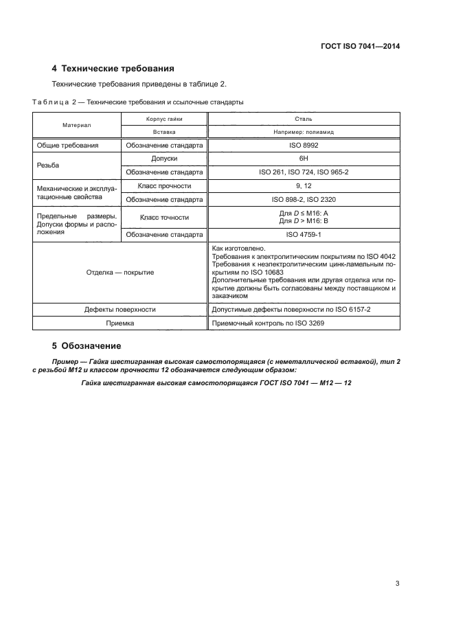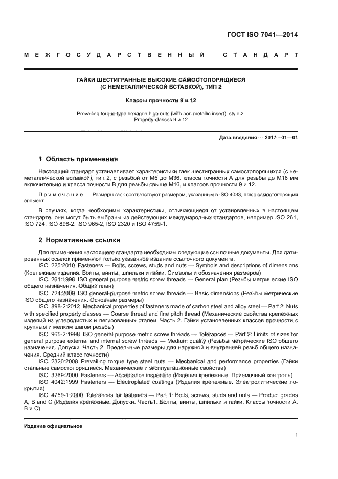 Настоящий стандарт устанавливает характеристики гаек шестигранных самостопорящихся (с неметаллической вставкой), тип 2, с резьбой от M5 до M36, класса точности А для резьбы до М16 мм включительно и класса точности В для резьбы свыше М16, и классов прочности 9 и 12.