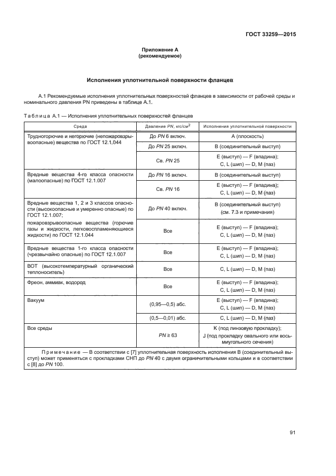 В настоящем стандарте приведены рекомендации по выбору материала для фланцев и крепежных деталей фланцевых соединений а также по выбору уплотнительной поверхности в зависимости от опасности и параметров рабочей среды.