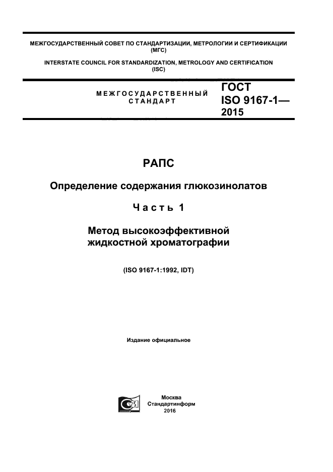 Настоящий стандарт распространяется на рапс и устанавливает метод высокоэффективной жидкостной хроматографии для определения содержания глюкозинолатов
