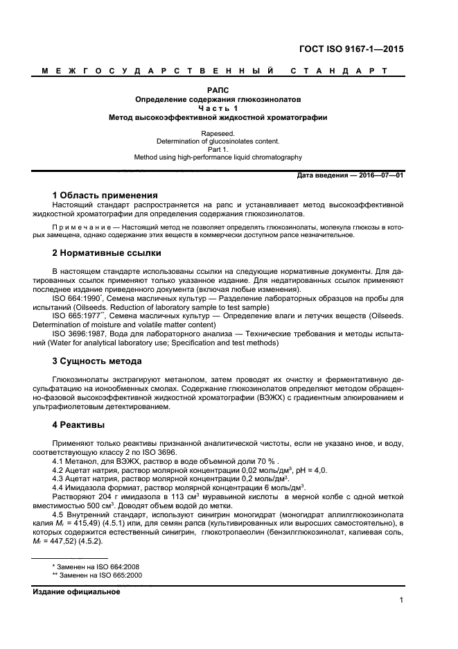| Область и условия применения: | Настоящий стандарт распространяется на рапс и устанавливает метод высокоэффективной жидкостной хроматографии для определения содержания глюкозинолатов |