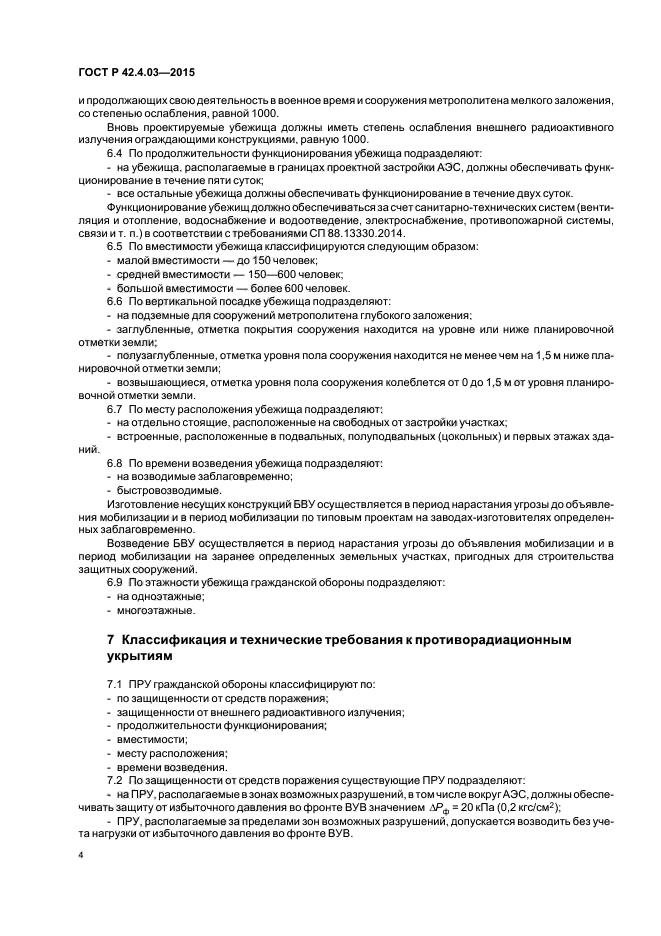 Настоящий стандарт распространяется на существующие и проекти-руемые защитные сооружения гражданской обороны.