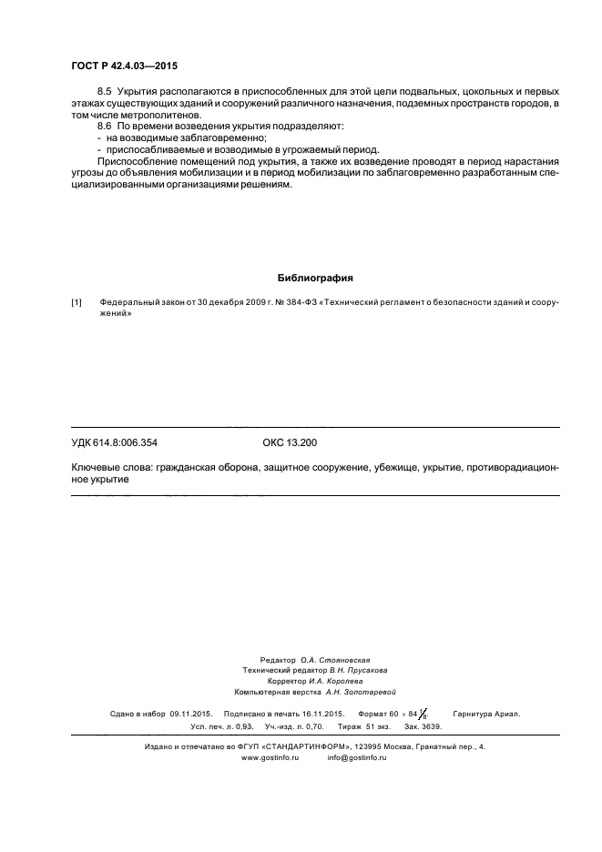 | Название рус.: | Гражданская оборона. Защитные сооружения гражданской обороны. Классификация. Общие технические требования |