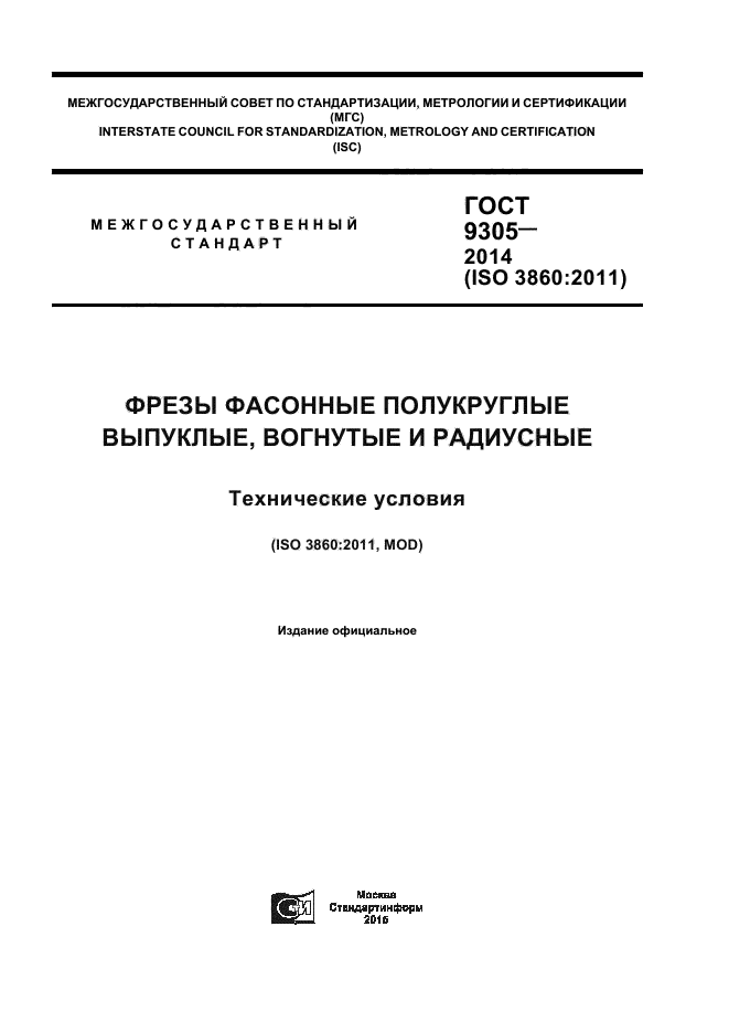 | Название рус.: | Фрезы фасонные полукруглые выпуклые, вогнутые и радиусные. Технические условия |