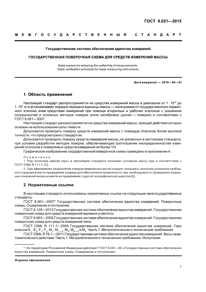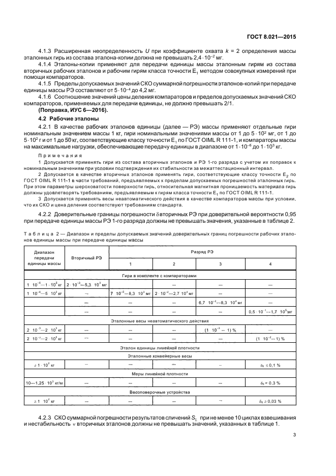 Настоящий стандарт распространяется на средства измерений массы в диапазоне от 1·10 в степени -6 до 1·10 в степени 7 кг и устанавливает порядок передачи единицы массы - килограмма от государственного первичного эталона этим средствам измерений при помощи вторичных и рабочих эталонов с указанием погрешностей и основных методов поверки и/или калибровки (далее - поверки) в соответствии с ГОСТ 8.061.