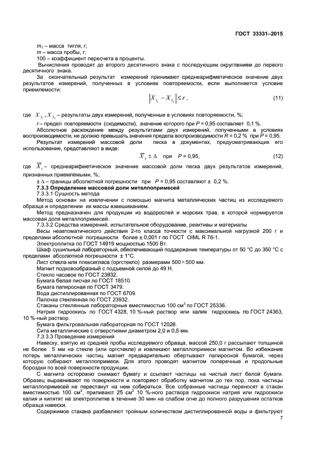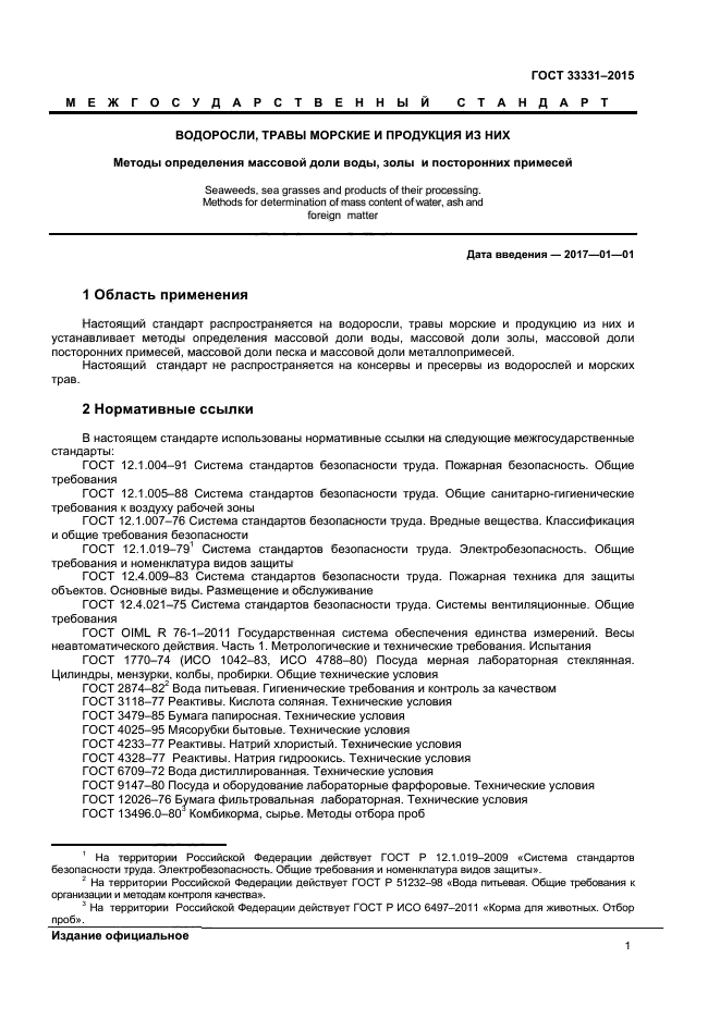 Настоящий стандарт распространяется на водоросли, травы морские и продукцию из них и устанавливает методы определения массовой доли воды, массовой доли золы, массовой доли посторонних примесей, массовой доли песка и массовой доли металлопримесей.