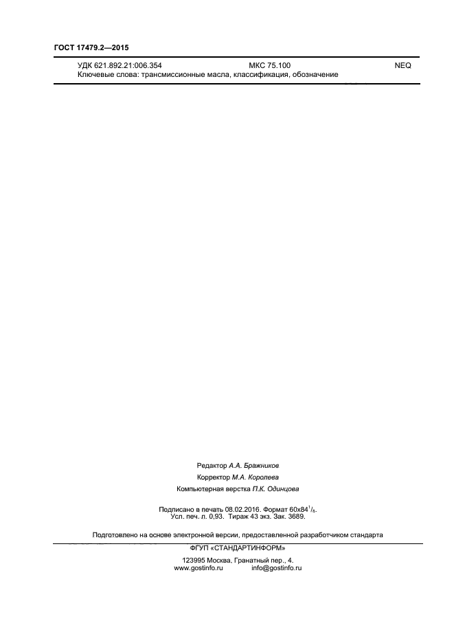 | Название рус.: | Масла трансмиссионные. Классификация и обозначение |
