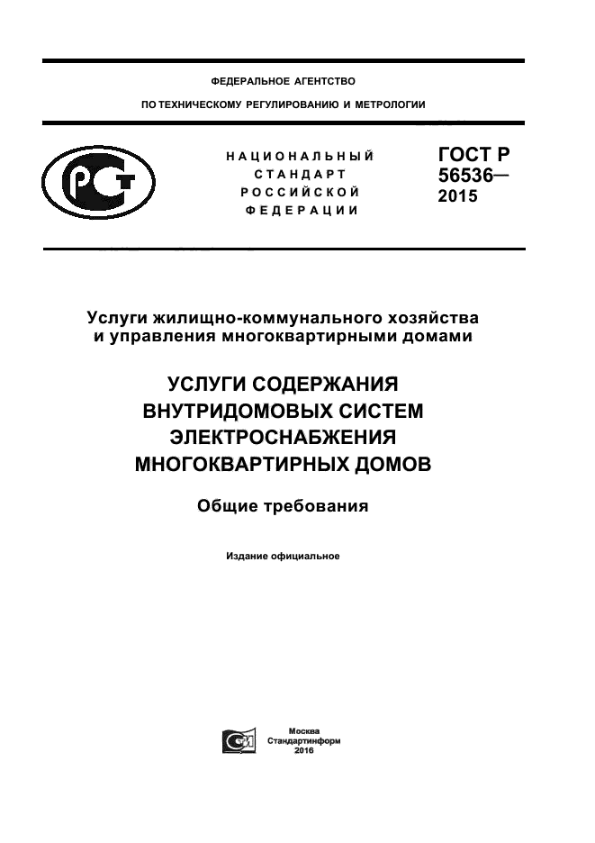 | Название рус.: | Услуги жилищно-коммунального хозяйства и управления многоквартирными домами. Услуги содержания внутридомовых систем электроснабжения многоквартирных домов. Общие требования |