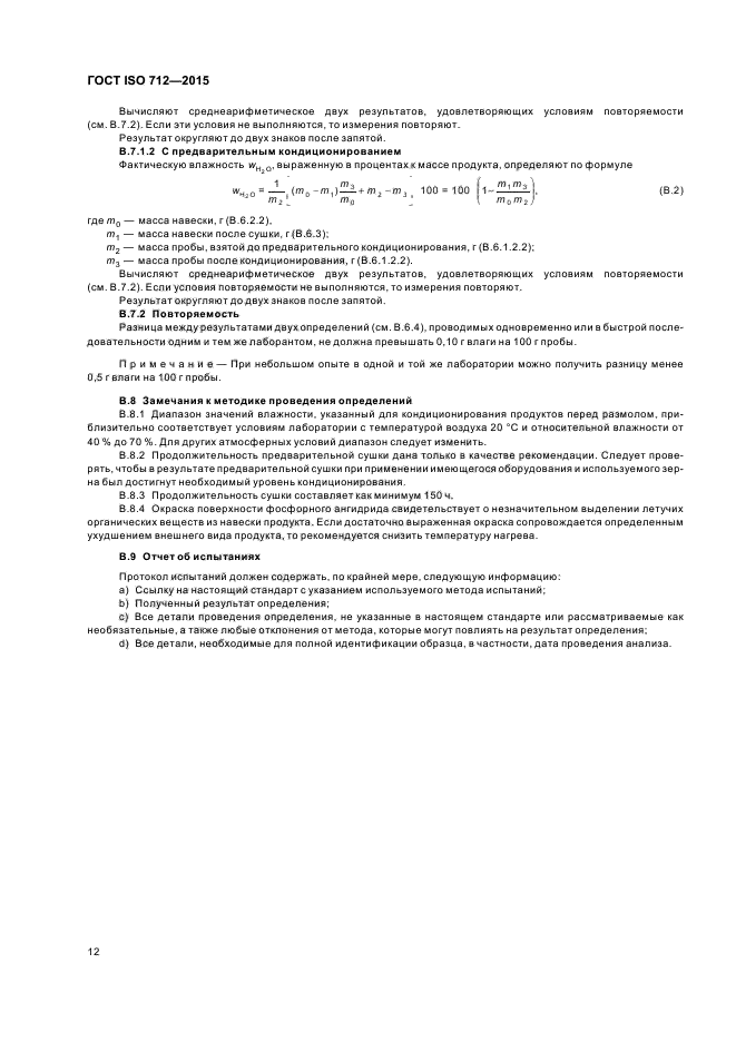 | Область и условия применения: | Настоящий стандарт устанавливает рабочий контрольный метод определения содержания влаги зерна и зерновых продуктов.