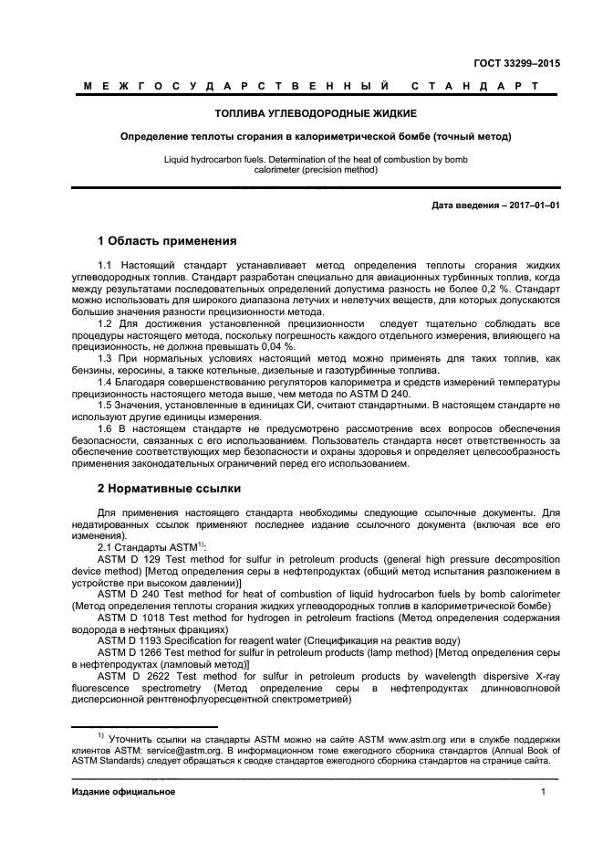 Настоящий стандарт устанавливает метод определения теплоты сгорания жидких углеводородных топлив. Стандарт разработан специально для авиационных турбинных топлив, когда между результатами последовательных определений допустима разность не более 0,2 %. Стандарт можно использовать для широкого диапазона летучих и нелетучих веществ, для которых допускаются большие значения разности прецизионности метода.