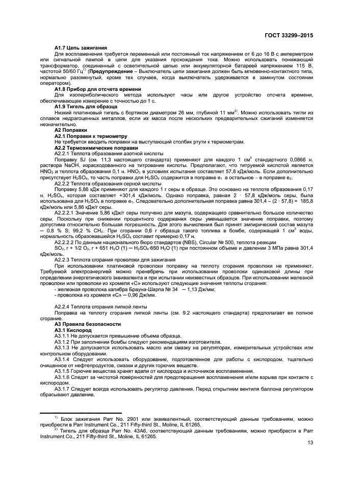 Для достижения установленной прецизионности следует тщательно соблюдать все процедуры настоящего метода, поскольку погрешность каждого отдельного измерения, влияющего на прецизионность, не должна превышать 0,04 %. При нормальных условиях настоящий метод можно применять для таких топлив, как бензины, керосины, а также котельные, дизельные и газотурбинные топлива. Благодаря совершенствованию регуляторов калориметра и средств измерений температуры прецизионность настоящего метода выше, чем метода по ASTM D 240. Значения, установленные в единицах СИ, считают стандартными. В настоящем стандарте не используют другие единицы измерения. В настоящем стандарте не предусмотрено рассмотрение всех вопросов обеспечения безопасности, связанных с его использованием. Пользователь стандарта несет ответственность за обеспечение соответствующих мер безопасности и охраны здоровья и определяет целесообразность применения законодательных ограничений перед его использованием |