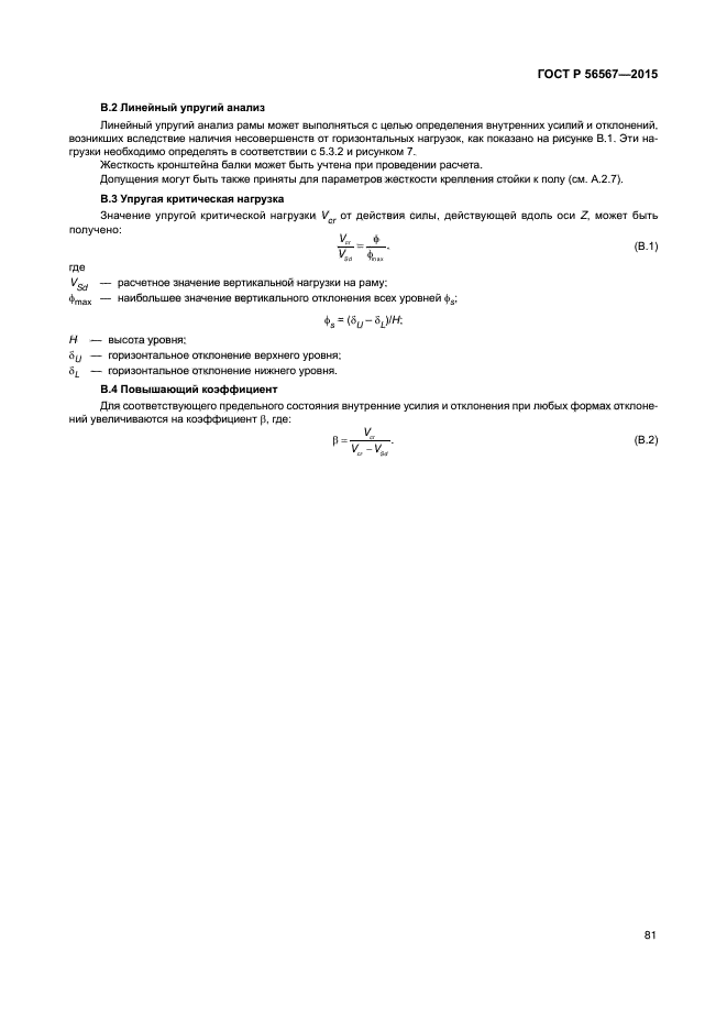 | Область и условия применения: | Настоящий стандарт устанавливает основы расчета конструкций стационарных фронтальных сборно-разборных стеллажей, предназначенных для хранения тарных и штучных грузов, несущие элементы которых изготовлены из стали.