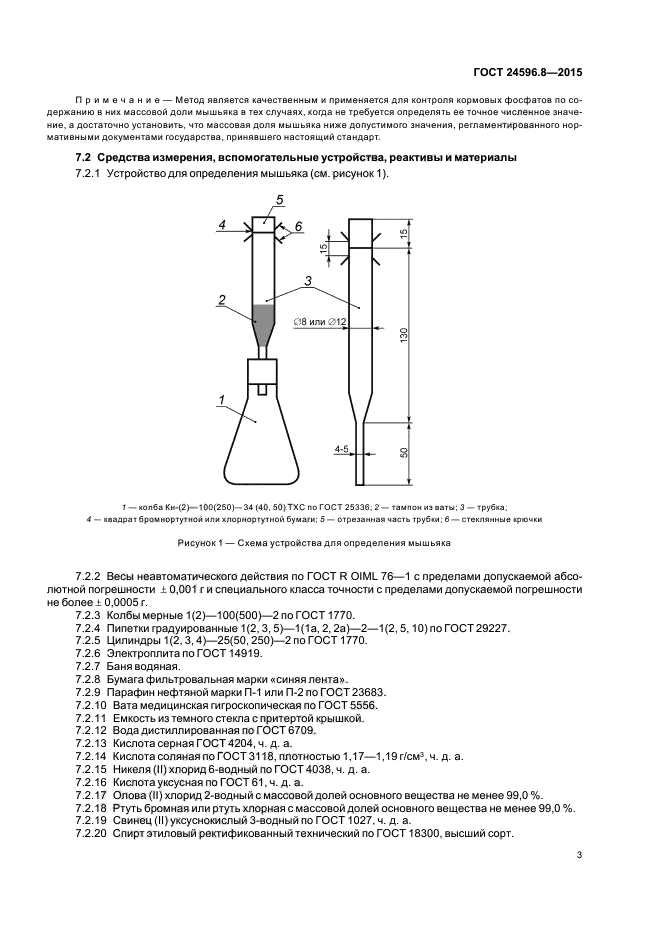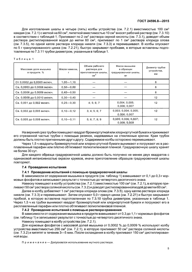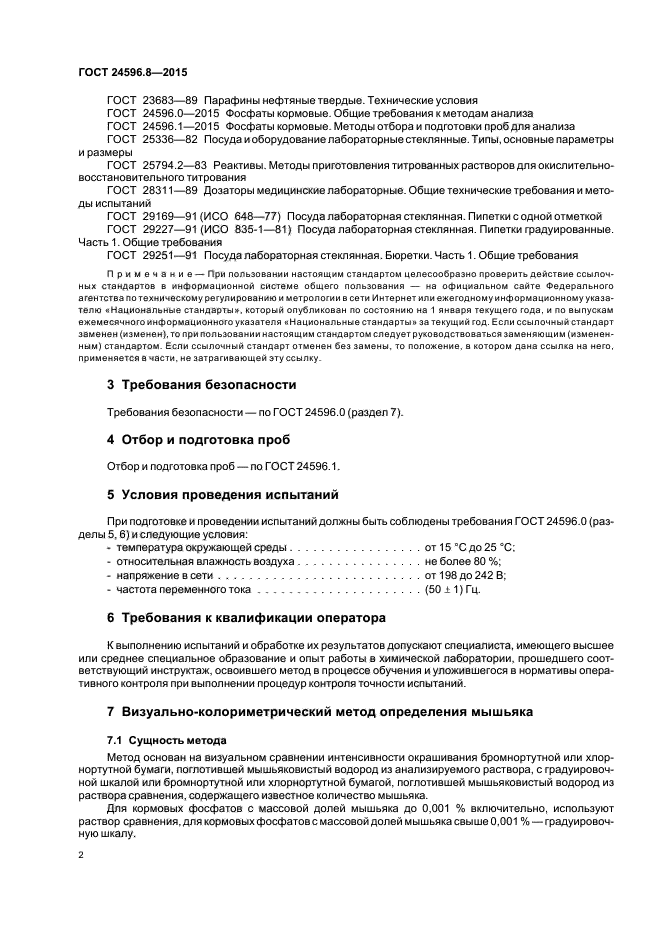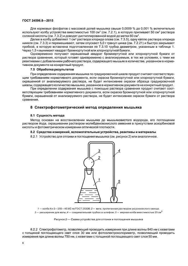 Настоящий стандарт распространяется на кормовые фосфаты, получаемые из минерального сырья, и устанавливает визуально-колориметрический и спектрофотометрический методы определения массовой доли мышьяка в диапазоне от 0,0002 % до 0,008 %