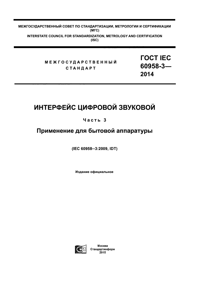 | Обозначение: | ГОСТ IEC 60958-3-2014 |