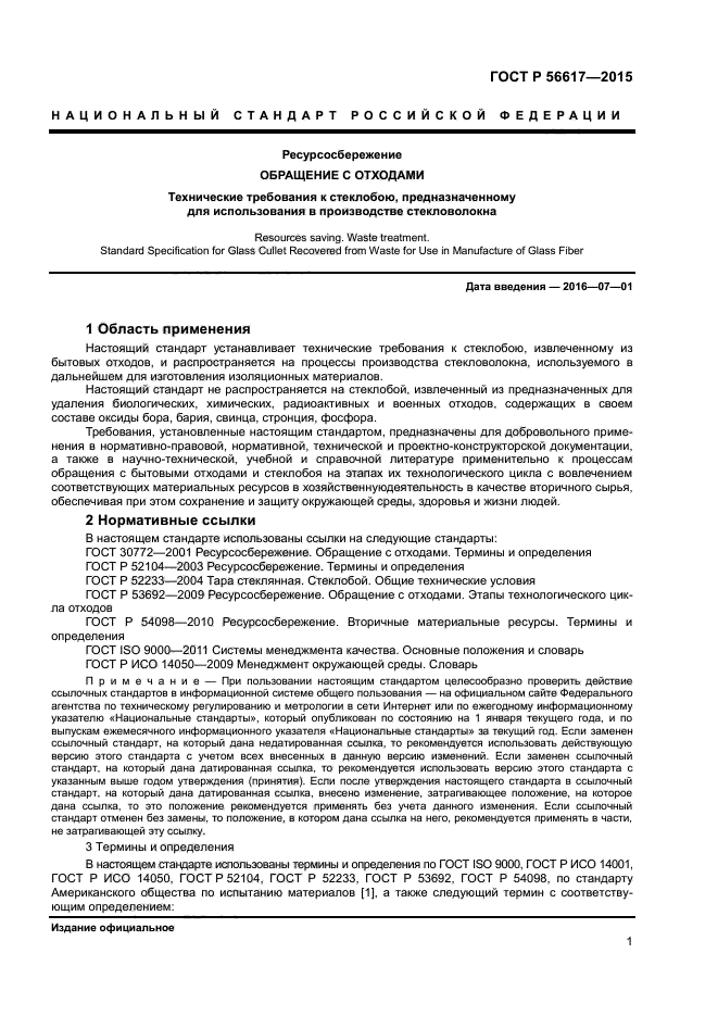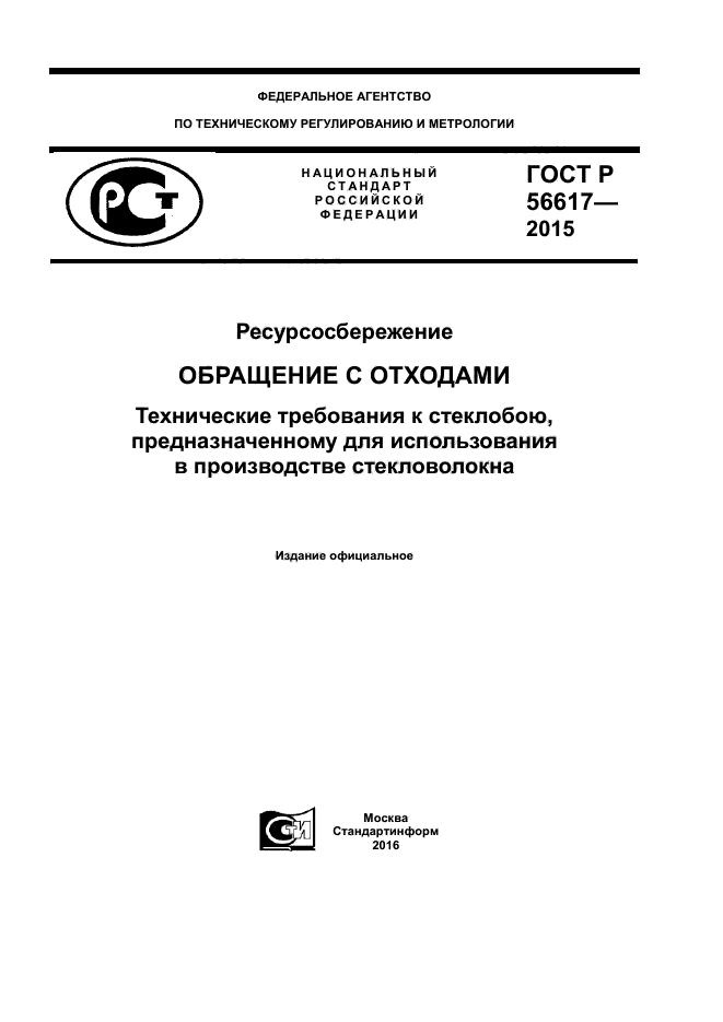 | Название рус.: | Ресурсосбережение. Обращение с отходами. Технические требования к стеклобою, предназначенному для использования в производстве стекловолокна |