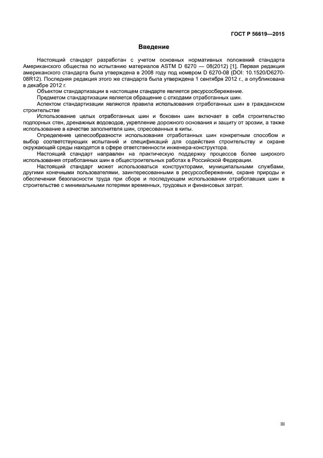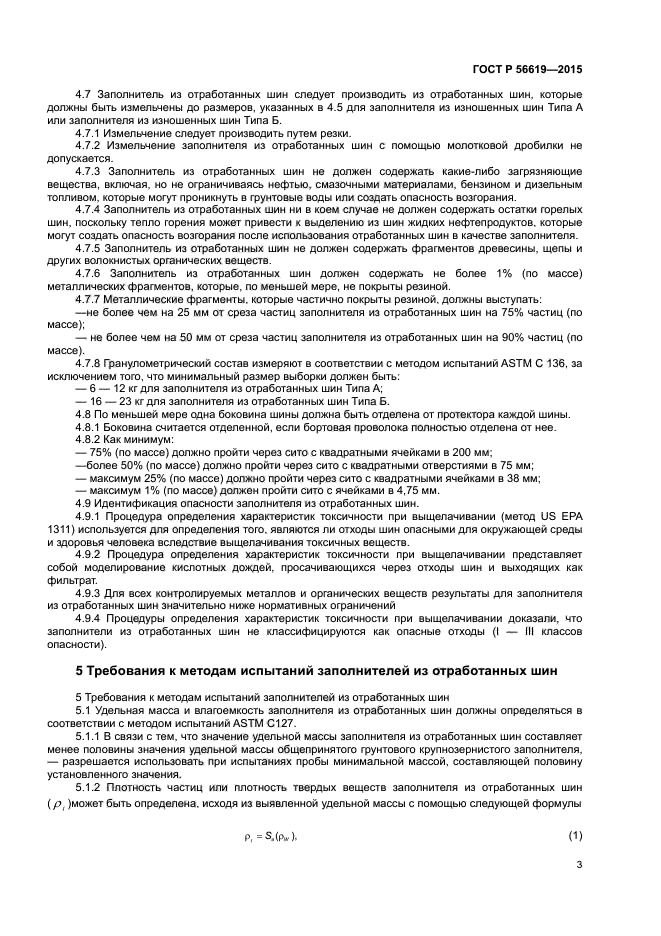 Настоящий стандарт устанавливает правила испытания физических свойств отработанных шин и распространяется на проектные решения, практический опыт применения в гражданском строительстве продуктов выщелачивания переработанных или целых отработанных шин, используемых вместо традиционных строительных материалов, таких как камень, гравий, почва, песок, щебень, легкие заполнители для бетона, а также иных заполнителей.