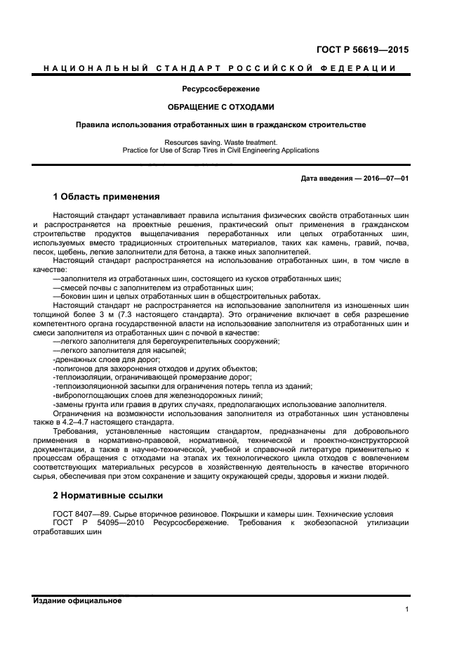 | Название рус.: | Ресурсосбережение. Обращение с отходами. Правила использования отработанных шин в гражданском строительстве |