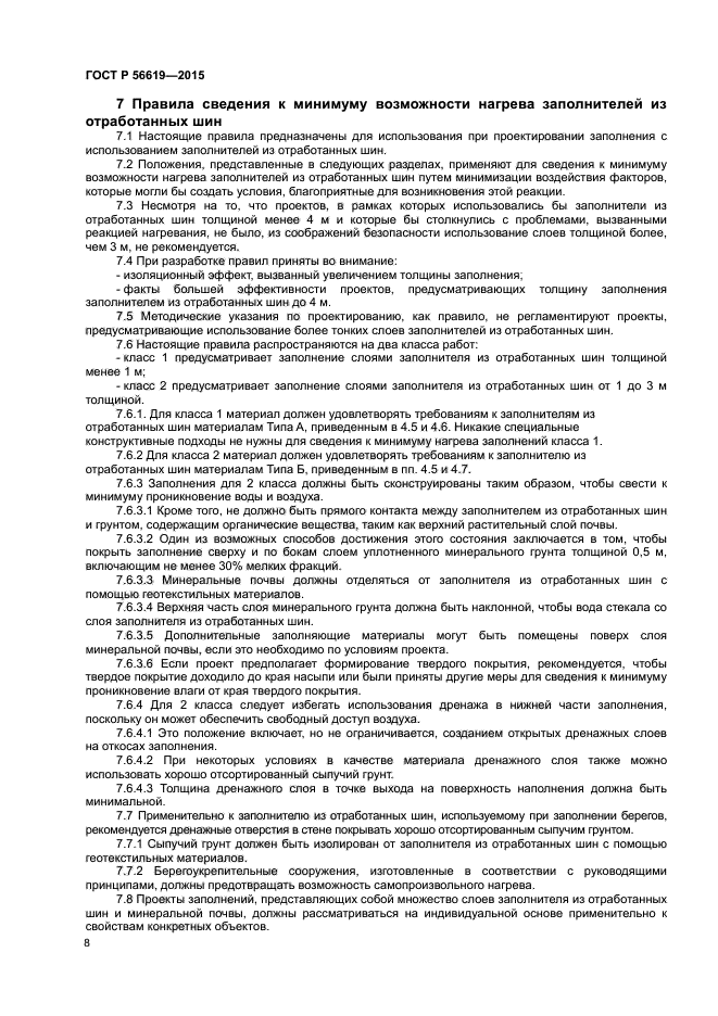 Настоящий стандарт распространяется на использование отработанных шин, в том числе в качестве: – заполнителя из отработанных шин, состоящего из кусков отработанных шин; – смесей почвы с заполнителем из отработанных шин; – боковин шин и целых отработанных шин в общестроительных работах |