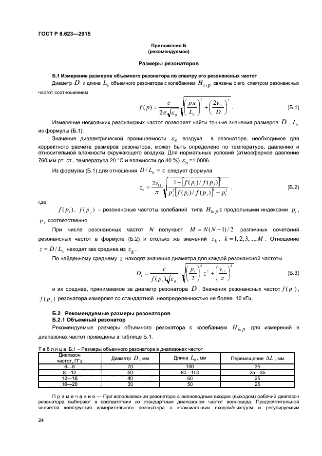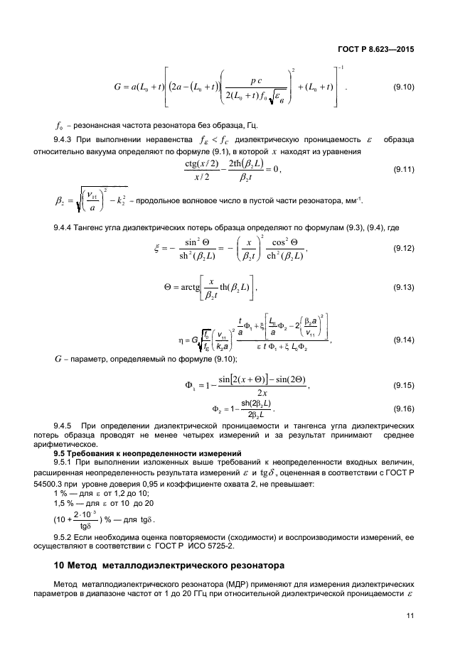 В настоящем стандарте представлены следующие методы измерений: - объемного резонатора при фиксированной резонансной частоте; - объемного резонатора при фиксированной резонансной длине; - щелевого резонатора; - металлодиэлектрического резонатора; - объемного резонатора в закритическом режиме; - объемного резонатора для стержневых образцов |