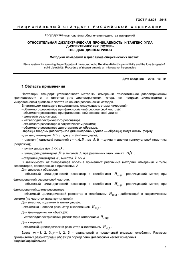 | Область и условия применения: | Настоящий стандарт устанавливает методики измерений относительной диэлектрической проницаемости эпсилон и тангенса угла диэлектрических потерь тангенс дельта твердых диэлектриков в микроволновом диапазоне частот на основе резонансных методов.