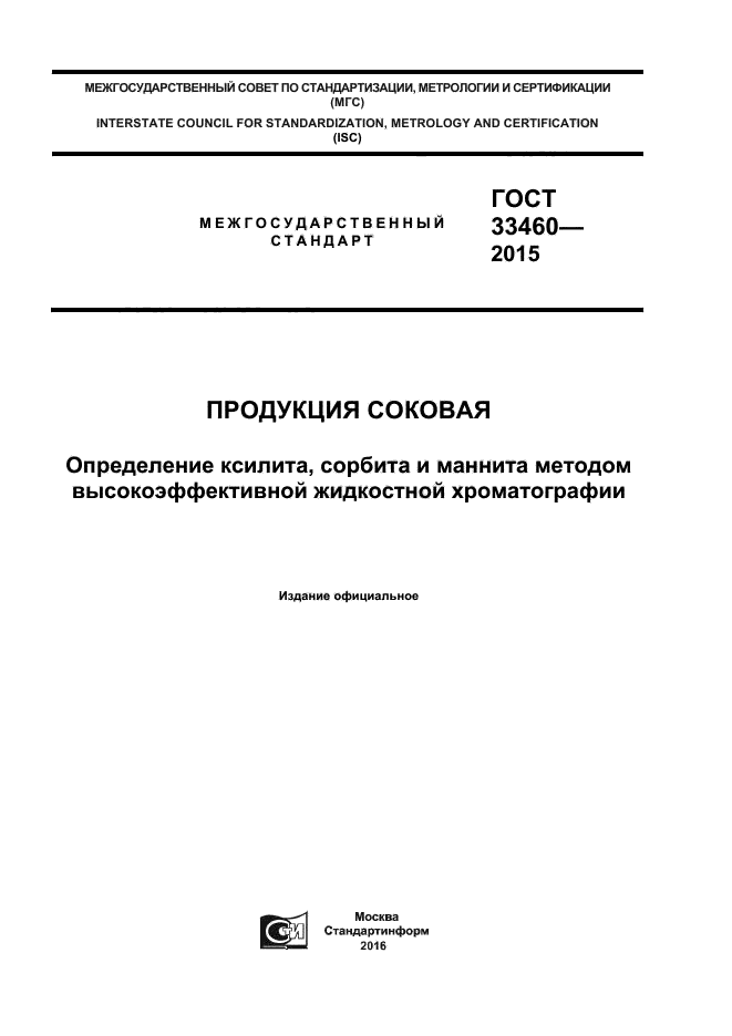 | Название рус.: | Продукция соковая. Определение ксилита, сорбита и маннита методом высокоэффективной жидкостной хроматографии |