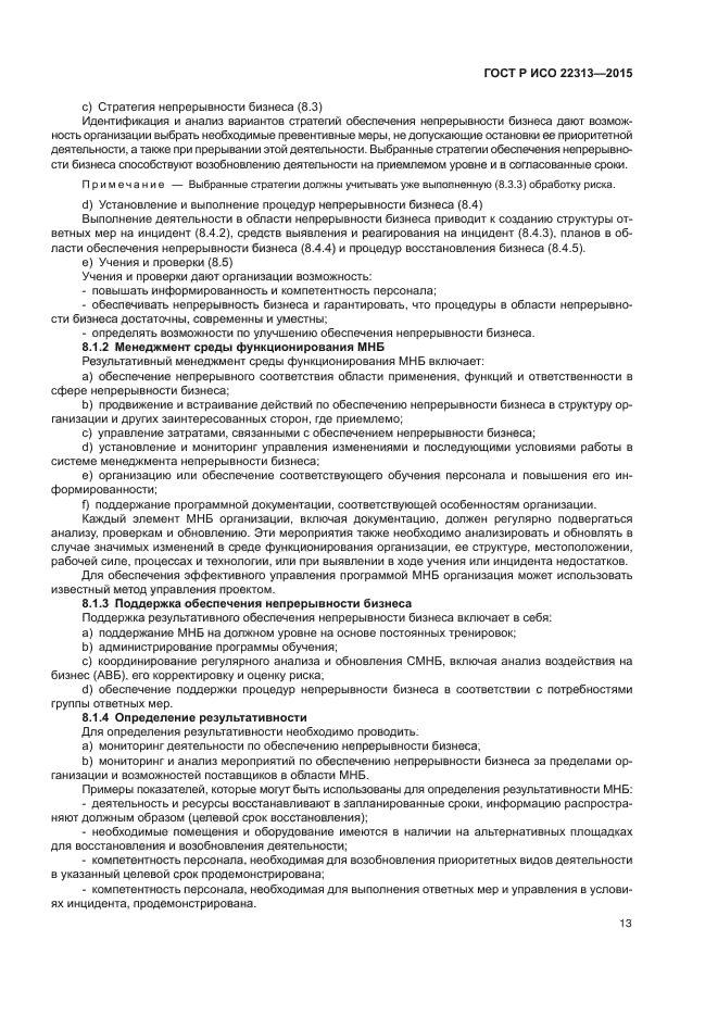 Настоящий стандарт содержит руководство, разработанное на основе лучшей международной практики по планированию, установлению, внедрению, применению, мониторингу, анализу, поддержке и постоянному улучшению документированной системы менеджмента непрерывности бизнеса, позволяющей организации быть готовой к инциденту, предпринять ответные меры и восстановить свою деятельность при возникновении разрушительных инцидентов