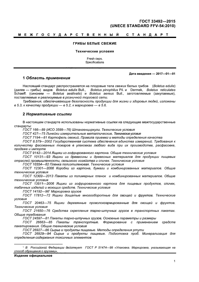 | Область и условия применения: | Настоящий стандарт распространяется на плодовые тела свежих белых грибов (Boletus edulis) видов Boletus edulis Bull., Boletus pinophilus Pil. и Dermek, Boletus reticulates Schaeff. (синоним – Boletus aestivalis) и Boletus aereus Bull., заготовляемые (закупаемые), поставляемые и реализуемые в розничной торговой сети |