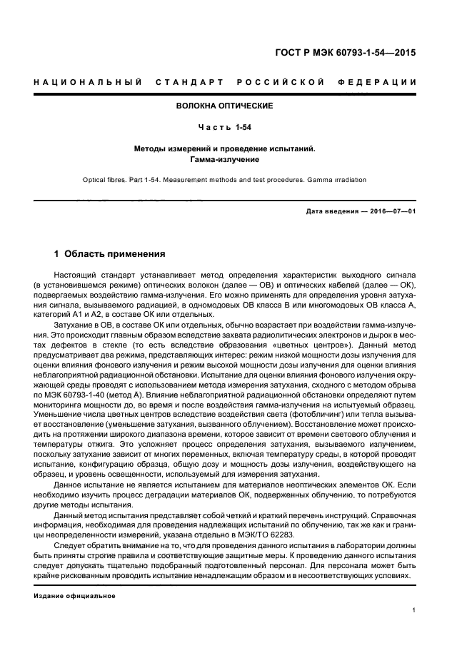| Название англ.: | Optical fibres. Part 1-54. Measurement methods and test procedures. Gamma irradiation |