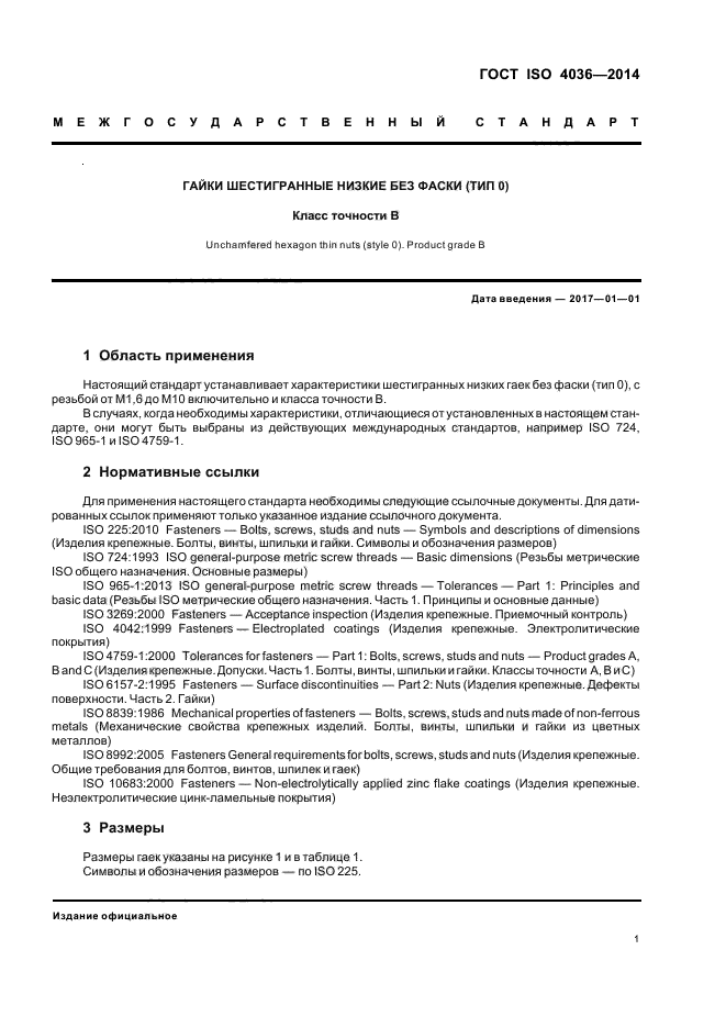 | Область и условия применения: | Настоящий стандарт устанавливает характеристики шестигранных низких гаек без фаски (тип 0), с резьбой от М1,6 до М10 включительно и класса точности В |
