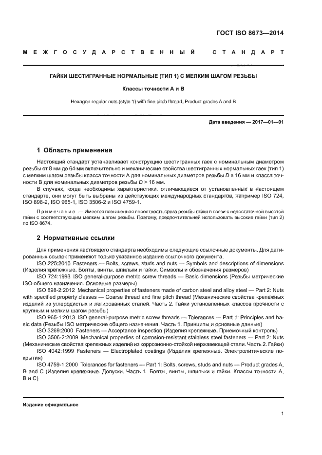 | Название англ.: | Hexagon regular nuts (style 1) with fine pitch thread. Product grades A and B |