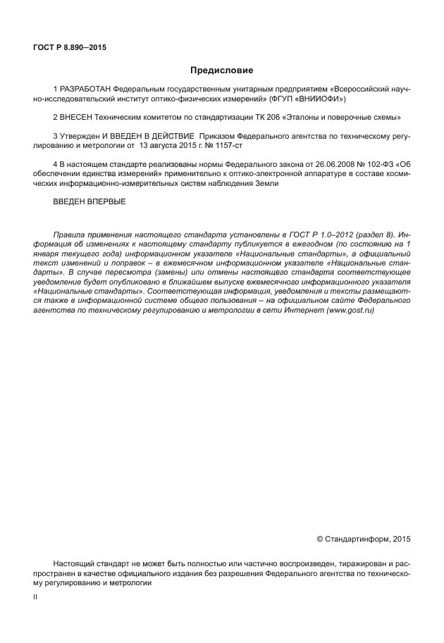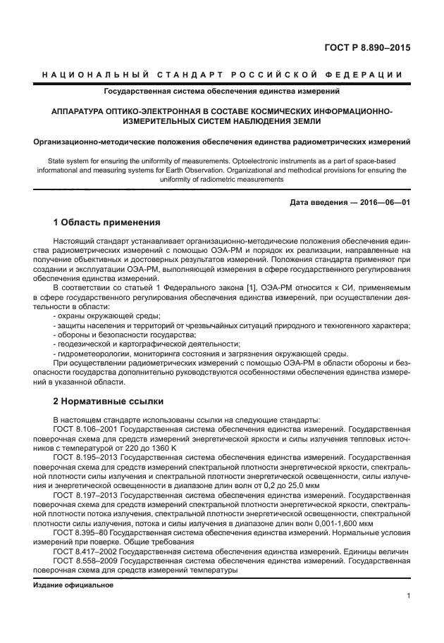| Название англ.: | State system for ensuring the traceability of measurements. Optoelectronic instruments as a part of space-based informational and measuring systems for Earth Observation. Organizational and methodical provisions for ensuring the uniformity of radiometric measurements |