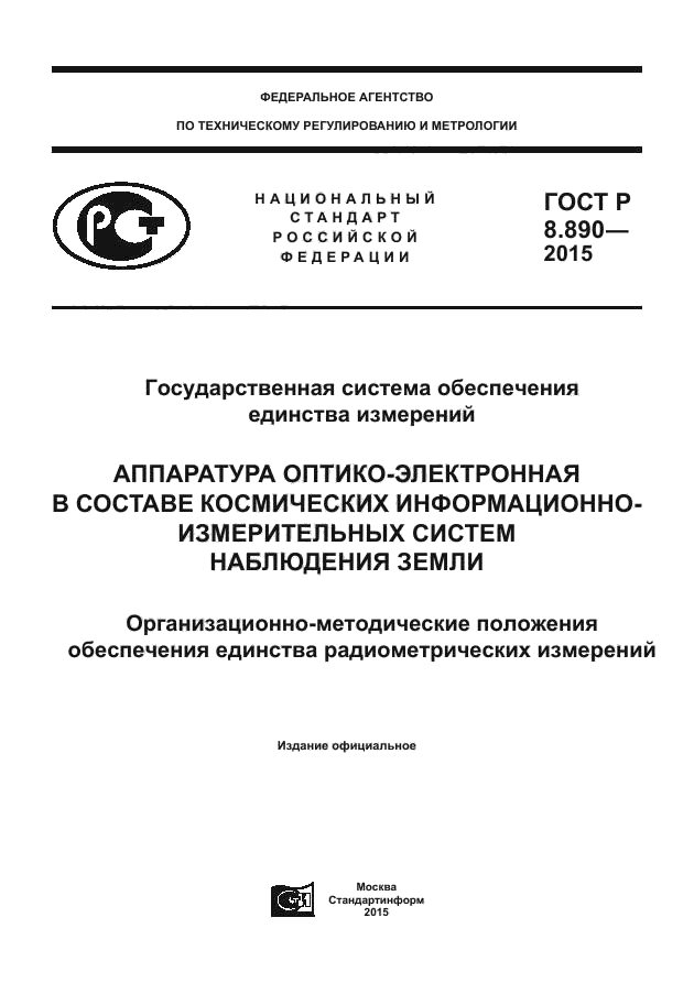 | Название рус.: | Государственная система обеспечения единства измерений. Аппаратура оптико-электронная в составе космических информационно-измерительных систем наблюдения Земли. Организационно-методические положения обеспечения единства радиометрических измерений |