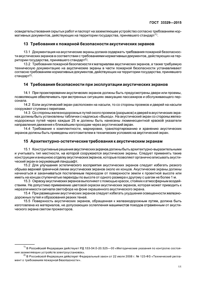 Настоящий стандарт не распространяется на акустические экраны, устанавливаемые вдоль автомобильных дорог, вокруг промышленных предприятий, отдельных стационарных источников шума и других объектов, не относящихся к железнодорожным путям