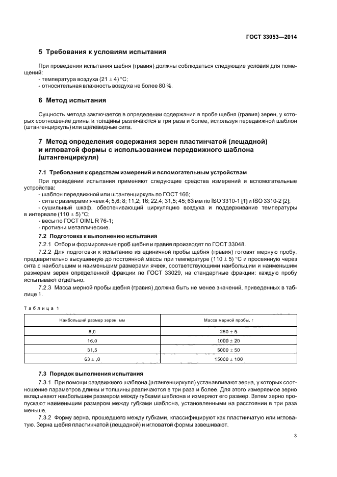 Настоящий стандарт устанавливает метод определения содержания зерен пластинчатой (лещадной) и игловатой формы в щебне и гравии из горных пород