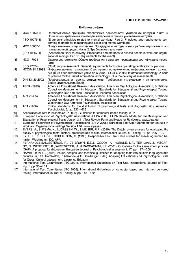 | Название англ.: | Assessment service delivery. Procedures and methods to assess people in work and organizational settings. Part 2. Requirements for service providers |