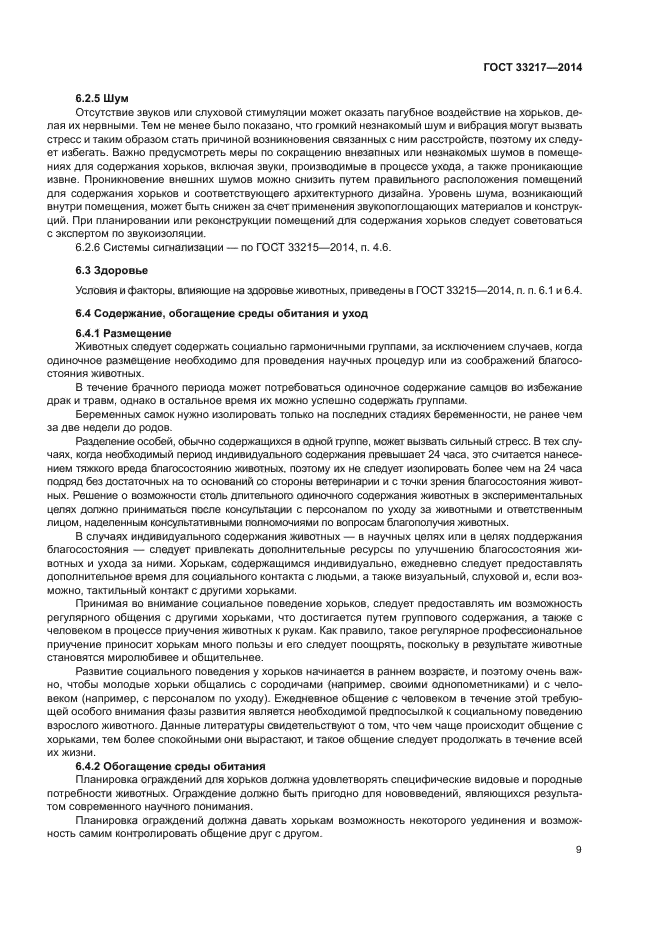 | Область и условия применения: | Настоящий стандарт устанавливает общие требования к размещению, содержанию и уходу за хищными млекопитающими, используемыми в учебных, экспериментальных и иных научных целях |