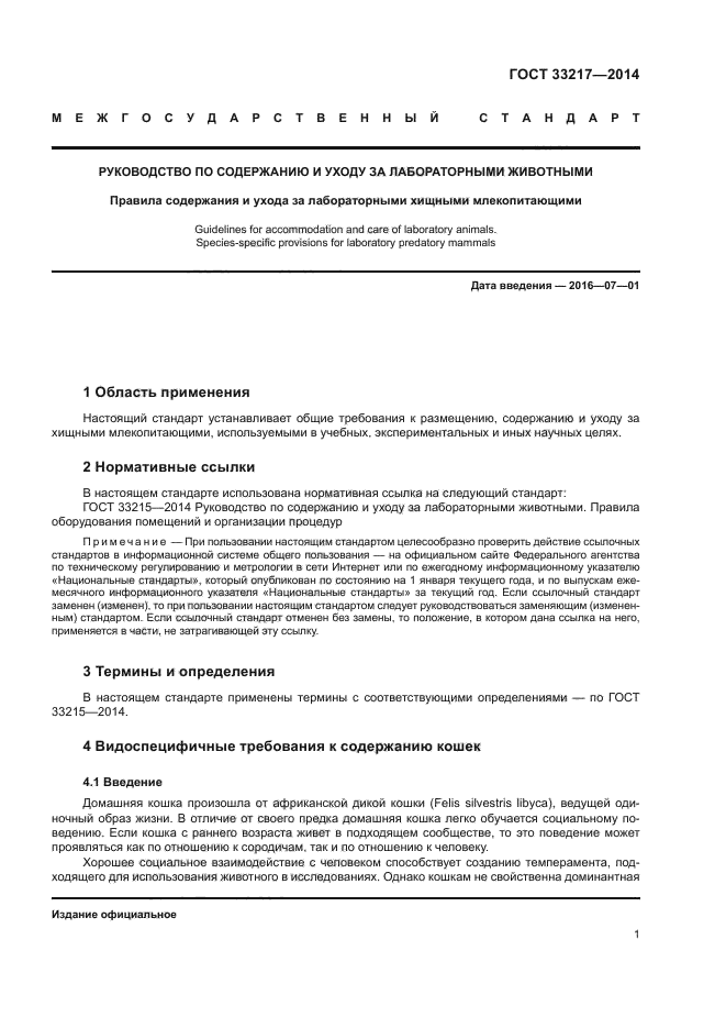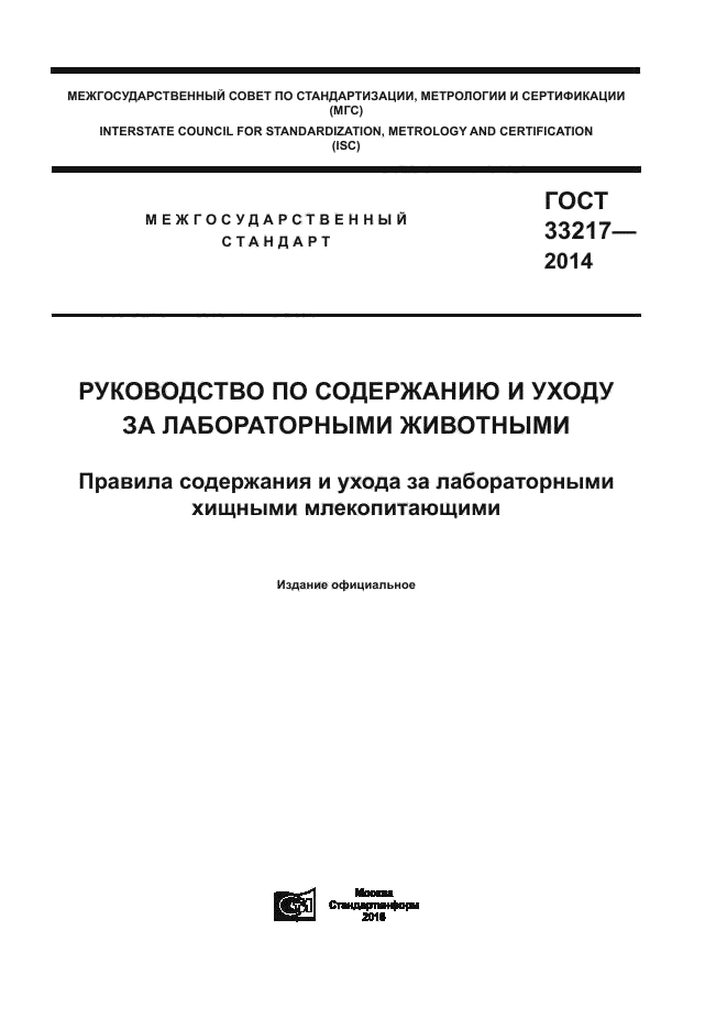 Настоящий стандарт устанавливает общие требования к размещению, содержанию и уходу за хищными млекопитающими, используемыми в учебных, экспериментальных и иных научных целях