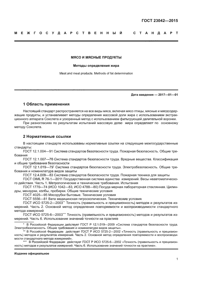| Область и условия применения: | Настоящий стандарт распространяется на все виды мяса, включая мясо птицы, мясные и мясосодержащие продукты, и устанавливает методы определения массовой доли жира с использованием экстракционного аппарата Сокслета и ускоренный метод с использованием фильтрующей делительной воронки.