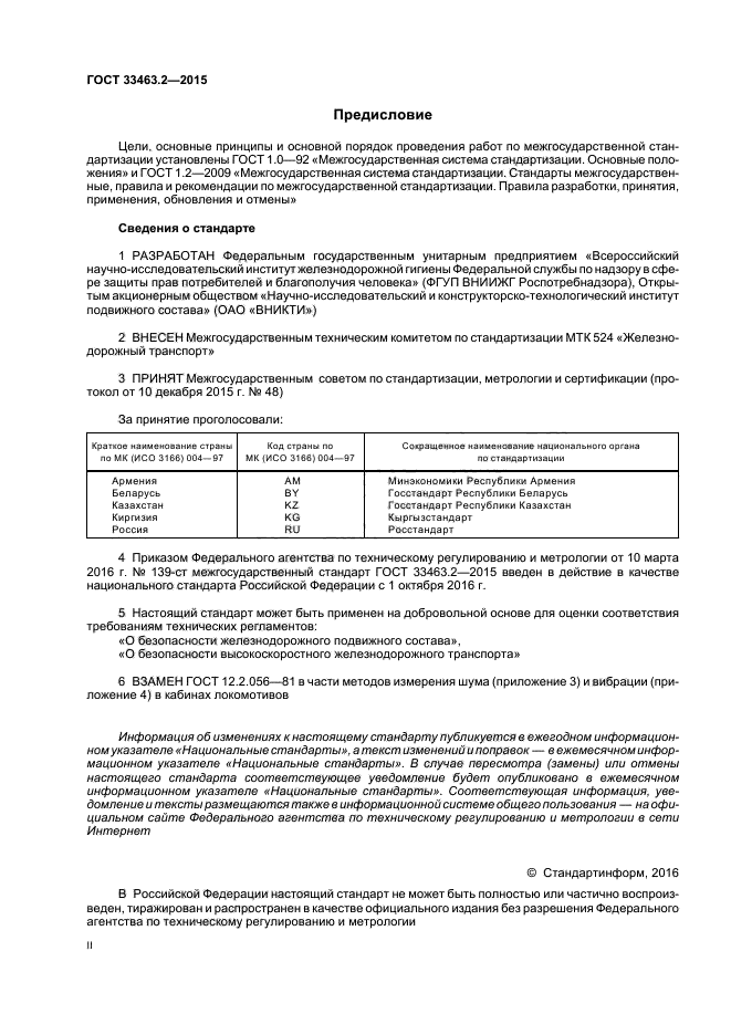 | Взамен в части: | ГОСТ 12.2.056-81 в части методов измерения шума (приложение 3) и вибрации (приложение 4) в кабинах локомотивов |