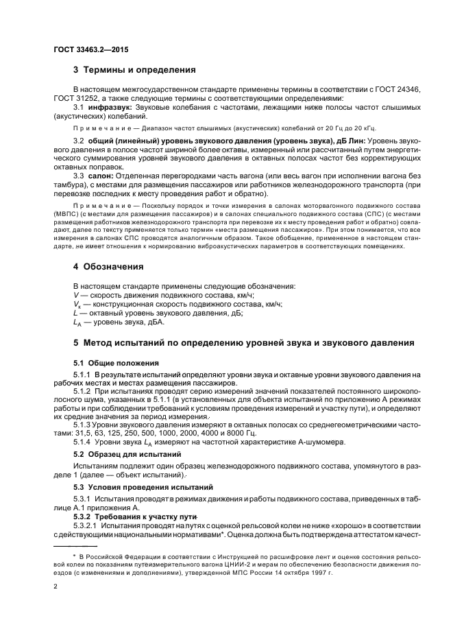 | Область и условия применения: | Настоящий стандарт распространяется на локомотивы, моторвагонный подвижной состав и специальный железнодорожный подвижной состав, и устанавливает методы испытаний по определению виброакустических показателей: уровней звука и звукового давления (уровней шума), уровней вибрации, уровней инфразвука |