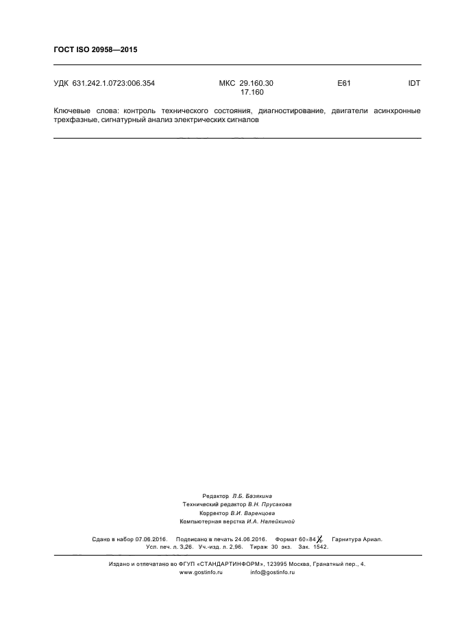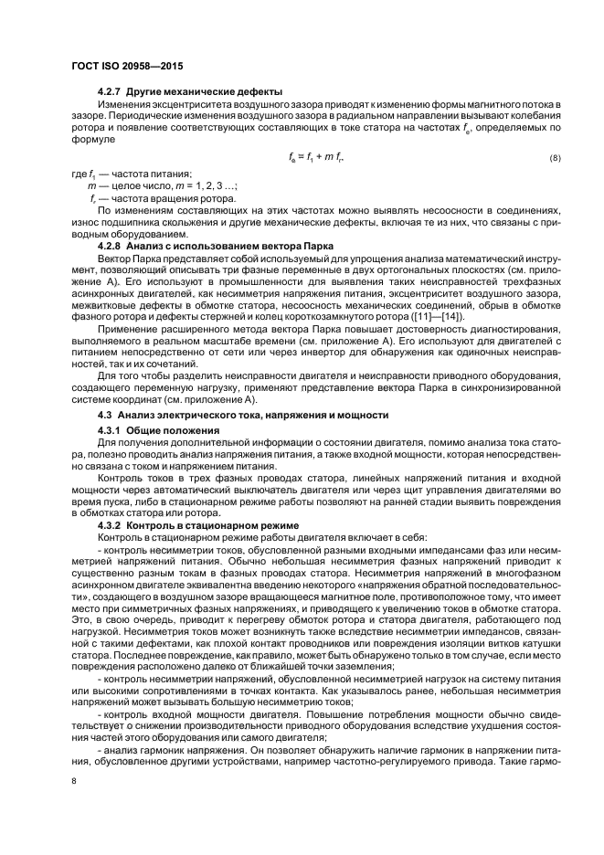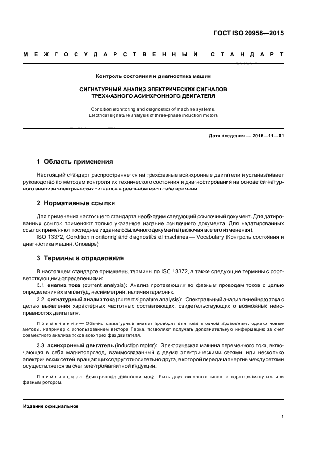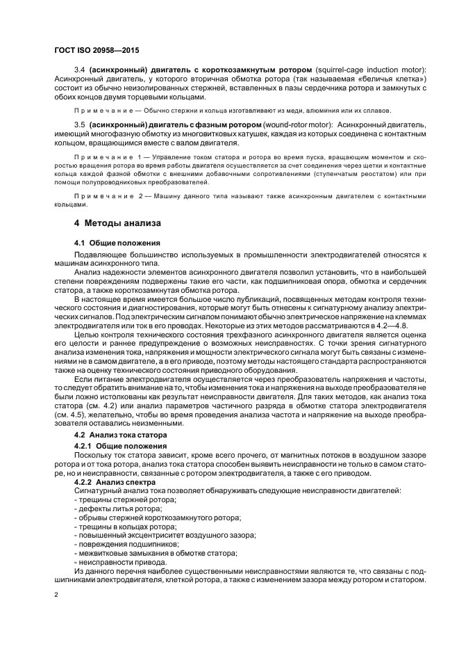 Настоящий стандарт распространяется на трехфазные асинхронные двигатели и устанавливает руководство по методам контроля их технического состояния и диагностирования на основе сигнатурного анализа электрических сигналов в реальном масштабе времени