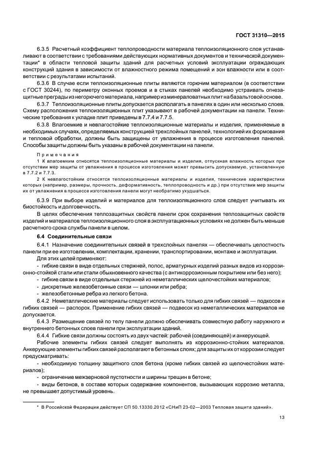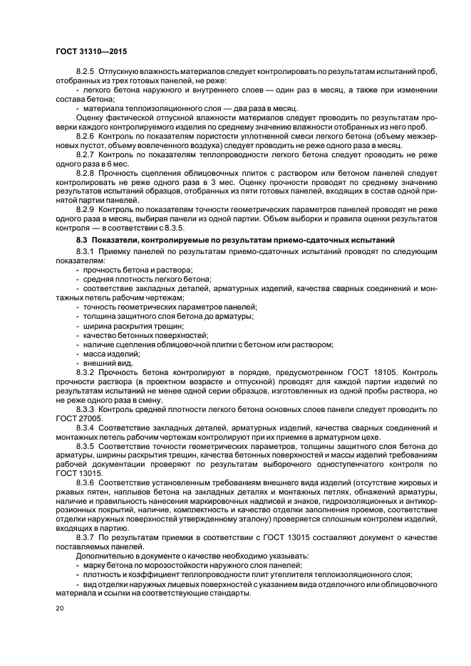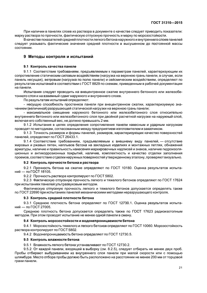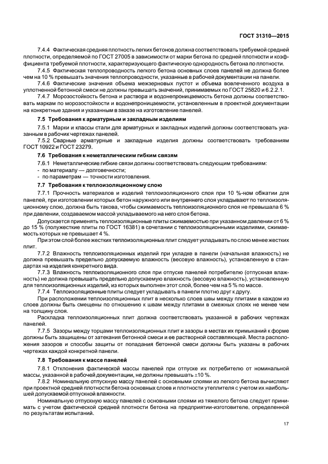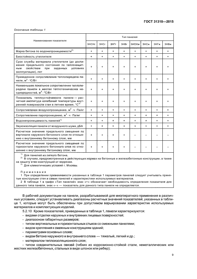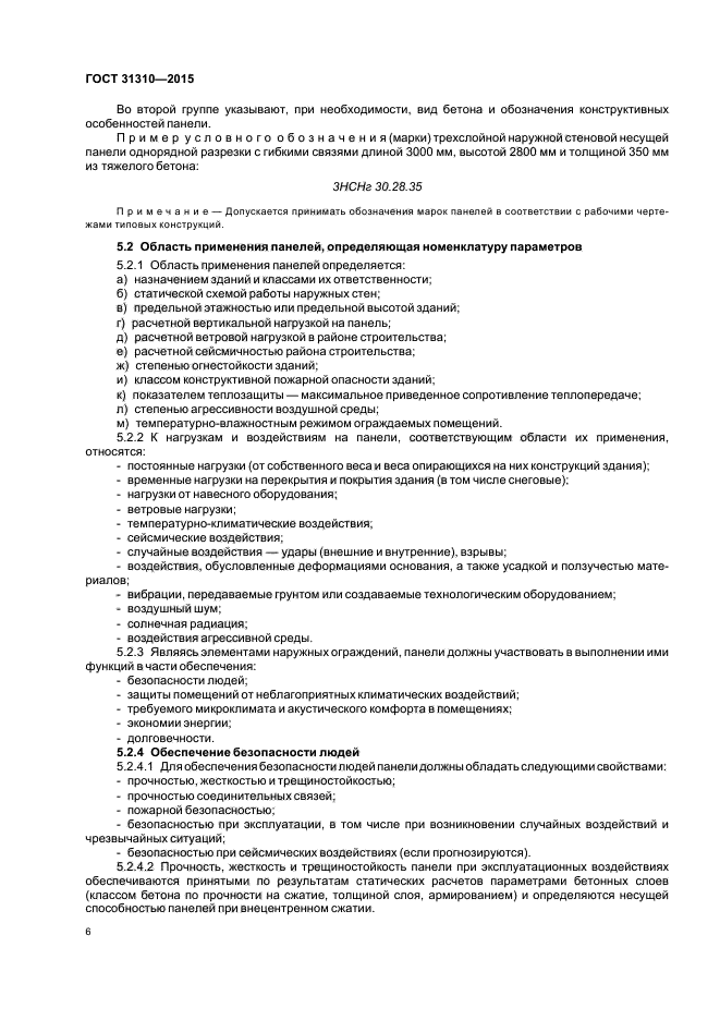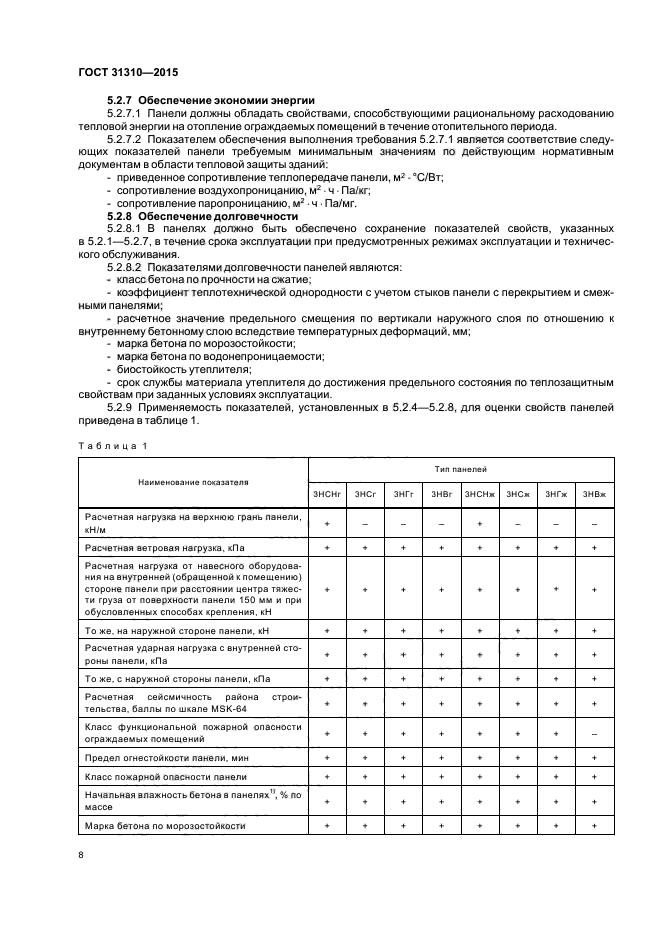 Требования настоящего стандарта следует учитывать при разработке нормативных документов и рабочей документации на панели конкретных типов
