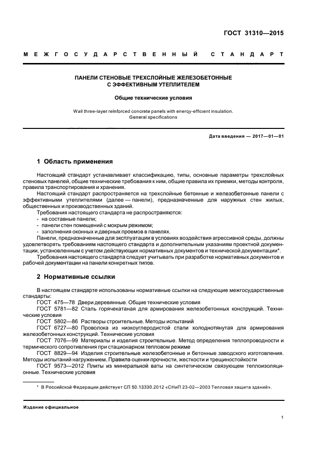 Настоящий стандарт распространяется на трехслойные бетонные и железобетонные панели с эффективными утеплителями, предназначенные для наружных стен жилых, общественных и производственных зданий.