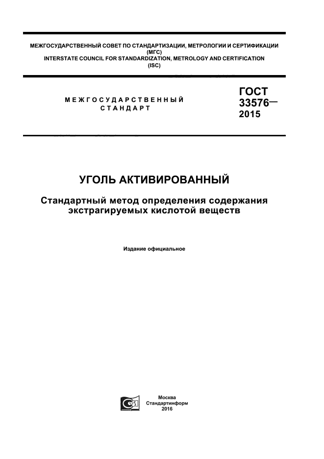 | Название рус.: | Уголь активированный. Стандартный метод определения содержания экстрагируемых кислотой веществ |