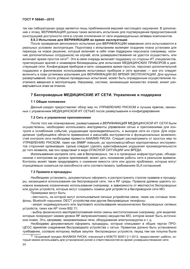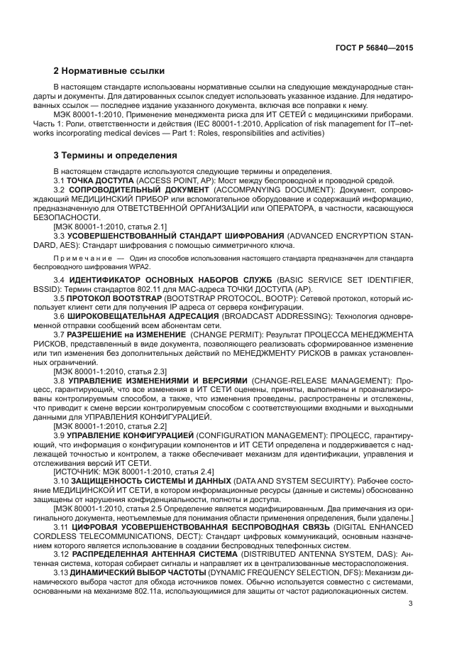 Настоящий стандарт предназначен для поддержки медицинской организации (МО) в выполнении МЕНЕДЖМЕНТА РИСКА МЕДИЦИНСКОЙ ИТ-СЕТИ, в которую входит один или несколько беспроводных каналов. В настоящем стандарте представлена техническая справочная информация, связанная с беспроводной технологией, а также примеры ОПАСНОСТЕЙ, которые следует учитывать при использовании беспроводной технологии в МЕДИЦИНСКИХ ИТ-СЕТЯХ и предложены меры по УПРАВЛЕНИЮ РИСКОМ для снижения вероятности НЕПРЕДНАМЕРЕННЫХ ПОСЛЕДСТВИЙ