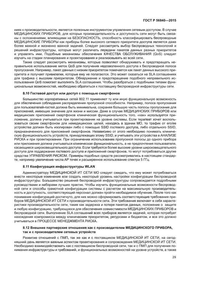 | Область и условия применения: | Настоящий стандарт предназначен для поддержки медицинской организации (МО) в выполнении МЕНЕДЖМЕНТА РИСКА МЕДИЦИНСКОЙ ИТ-СЕТИ, в которую входит один или несколько беспроводных каналов. В настоящем стандарте представлена техническая справочная информация, связанная с беспроводной технологией, а также примеры ОПАСНОСТЕЙ, которые следует учитывать при использовании беспроводной технологии в МЕДИЦИНСКИХ ИТ-СЕТЯХ и предложены меры по УПРАВЛЕНИЮ РИСКОМ для снижения вероятности НЕПРЕДНАМЕРЕННЫХ ПОСЛЕДСТВИЙ |