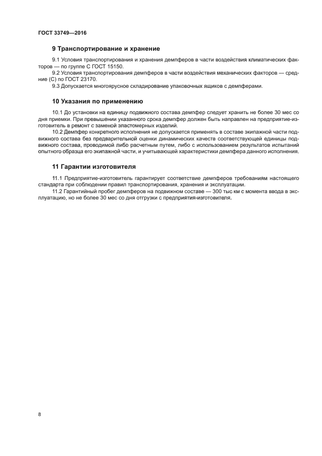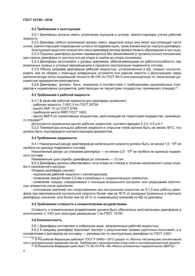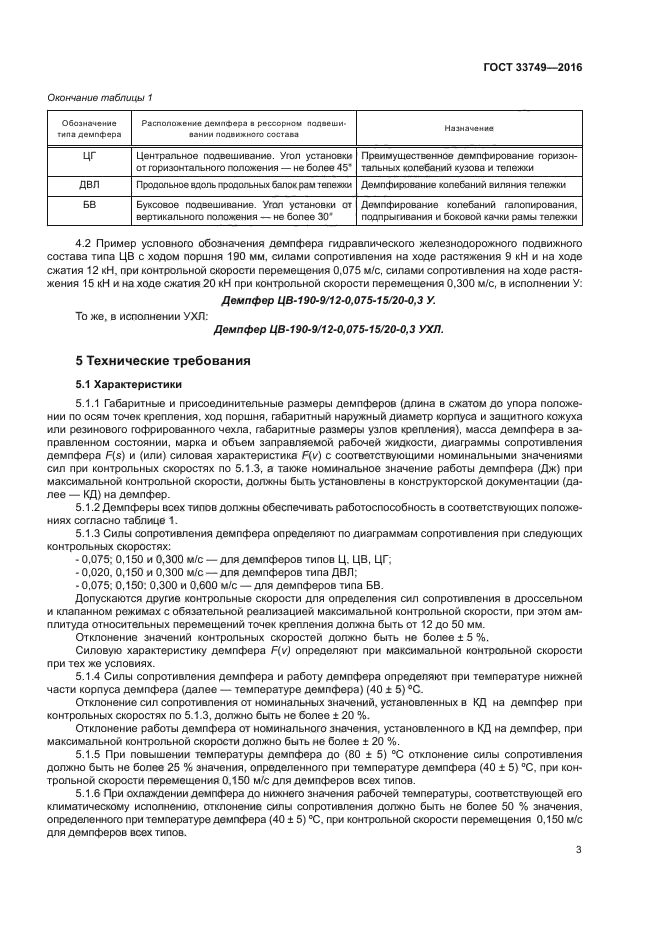 | Область и условия применения: | Настоящий стандарт распространяется на телескопические гидравлические демпферы (далее - демпферы), применяемые в рессорном подвешивании локомотивов, моторвагонного подвижного состава, специального подвижного состава и пассажирских вагонов локомотивной тяги |