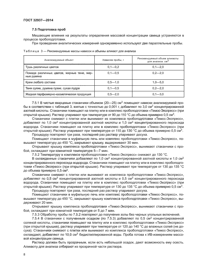 | Название рус.: | Продукция парфюмерно-косметическая. Инверсионно-вольтамперометрический метод определения свинца |