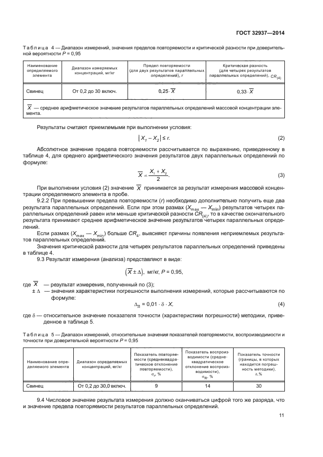 Диапазон содержаний определяемого элемента составляет от 0,2 до 30,0 мг/кг. Если содержание элемента в пробе выходит за верхнюю или нижнюю границу диапазона определяемых содержаний, допускается взятие соответственно меньшей или большей аликвоты подготовленной к измерению пробы